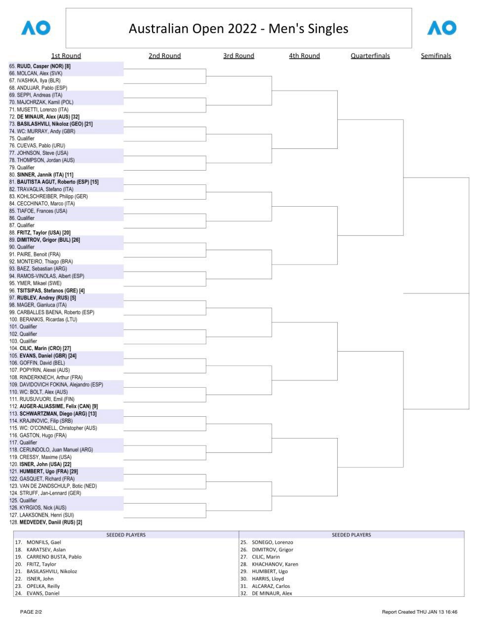 SEE THE AUSTRALIAN OPEN DRAWSJedd ZetzerJan 13, 20221 min readThe main draws for the Australian Open were released on Thursday.See the women’s draw below.Top half: Bottom half:See the men’s draw below:Top half:Bottom half: